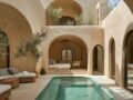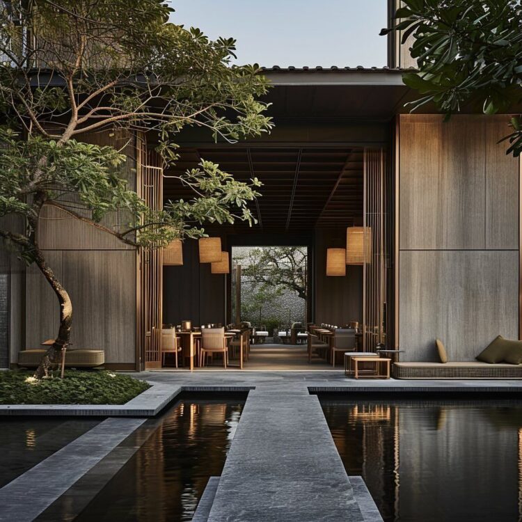 Open layouts with indoor–outdoor flow Neutral palettes with warm wood accents